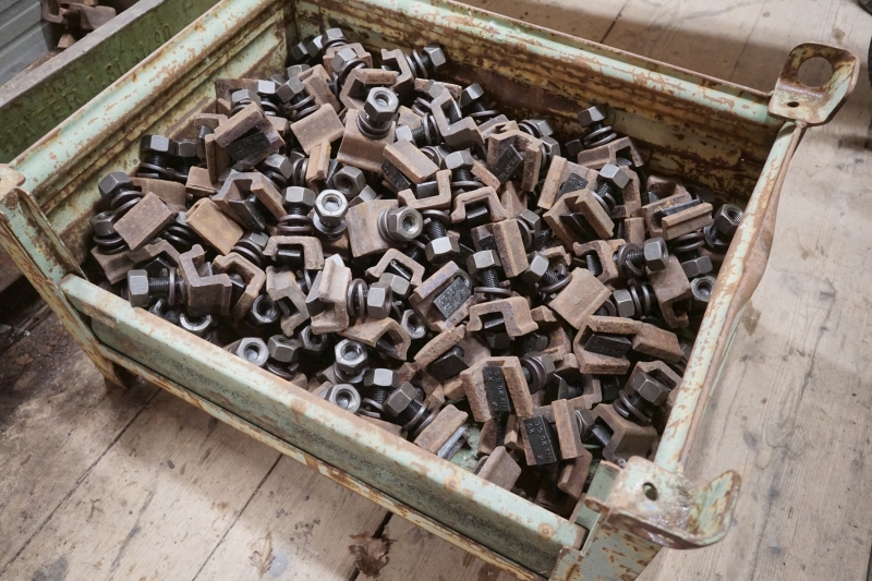 Kleineisenpäckchen gepackt, d.h. jeweils Hakenschraube, Klemmplatte,